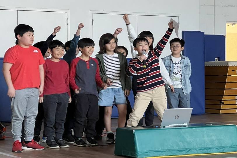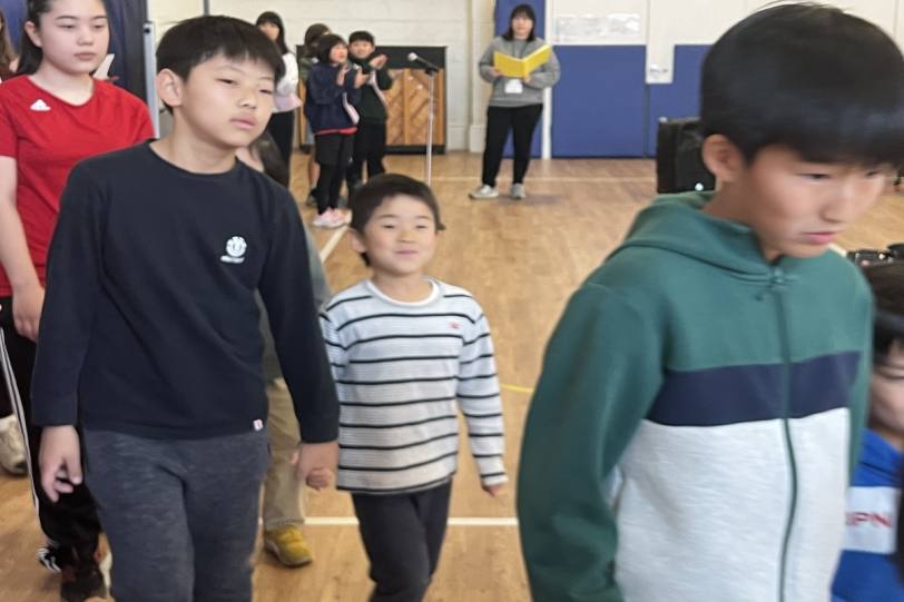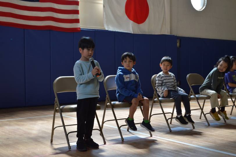 1年生は6年生と手をつなぎ入場。はじめは緊張した表情でしたが、各学年からの演奏やクイズなどの出し物を一緒に行っているうちに、次第に表情も明るくなり、楽しむ様子が見られました。1年生は、一人ずつ名前と好きなものを紹介して、立派に挨拶をすることができました。これでGJSの仲間入りです。これから様々な活動を一緒に取り組んでいきます。