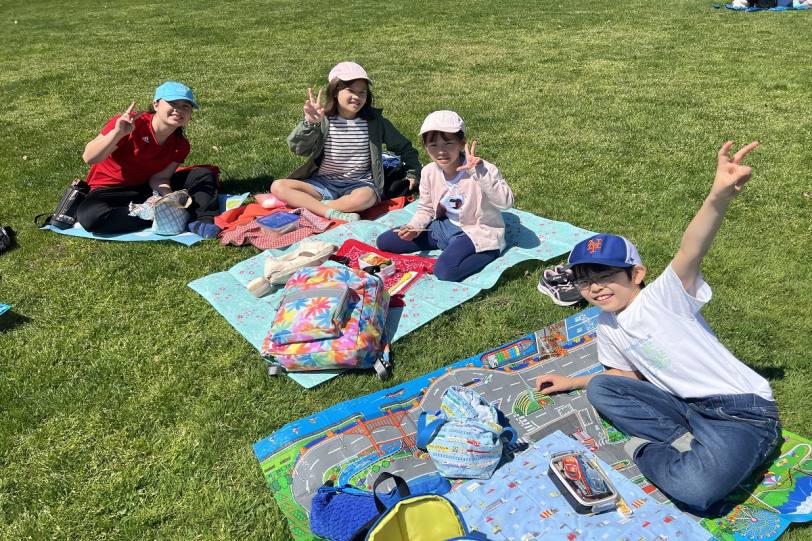 午後に行われたスクールピクニックでは、穏やかな春の陽ざしの中、6年生がリーダーとなり進めました。異学年のたて割班でお弁当やお菓子を食べた後は、6年生が考えたレクを行い、全員で楽しい時間を過ごすことができました。