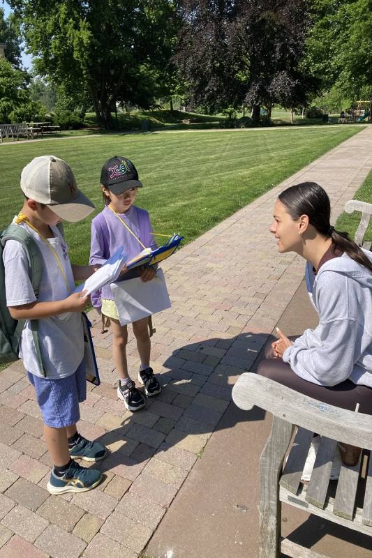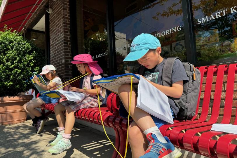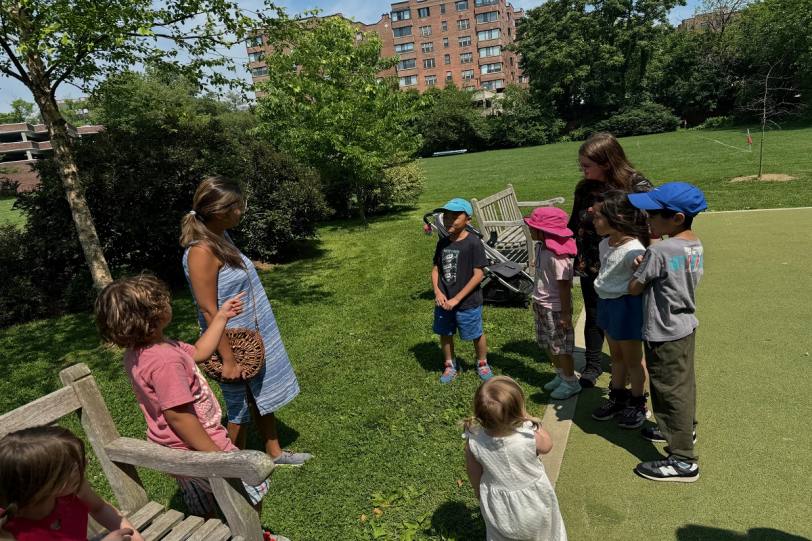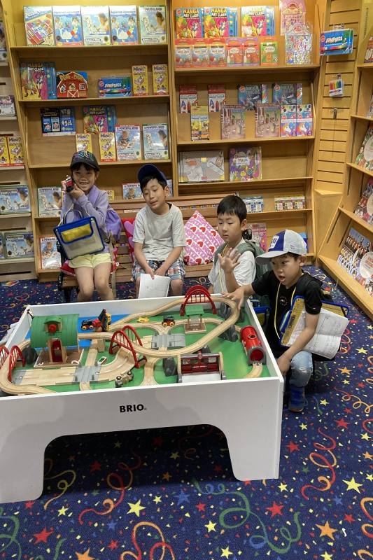 Greenwich Ave.の様子を見て、どの子も様々なお店があることに驚き、探検への興味関心を高めていました。実際に通りを歩き、たくさんのゴミ箱が設置されていたり、休息のためのベンチが置いてあったり、昔からある建造物にはそれを守るためのマークがあることを見付けたりと熱心に観察している様子でした。