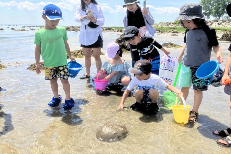 生き物に触れたり、海で遊んだりして、Greenwich の豊かな自然を存分に味わい、笑顔いっぱいの時間を過ごすことができました。「カブトガニを見つけられたことがうれしかった」「またみんなで砂遊びをしたいな」などの感想が聞かれ、子供たちにとって、楽しく充実した学習となりました。