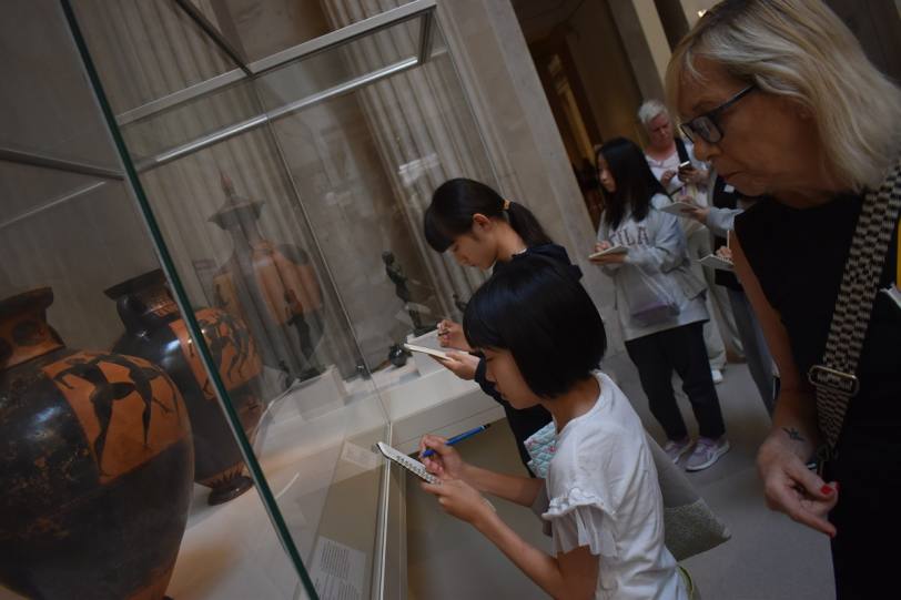 古代ギリシャ美術やエジプト美術の鑑賞では古代文明の偉大さや神秘さに圧倒されている様子がみられました。特にパリオリンピックが近いこともあり,オリンピアの祭典を描いた芸術品の鑑賞は,一段と感慨深いものがありました。また,日本美術の展示室も訪れ,五感に訴える日本美術の緻密さを改めて体感することができました。