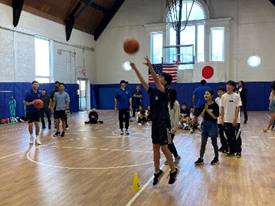 9月5日(木)に、NBAのNew York Knicksの吉本泰輔コーチをはじめ、ジュニア育成コーチの方々が来校し、本校体育館でバスケットボール教室を開催しました。開会のセレモニーでは、吉本コーチから「自分の目標が達成するまで粘り強く頑張った」というお話を聞き、次に財ニューヨーク総領事 森美樹夫大使より激励の言葉をいただき、バスケットボール教室に取り組みました。練習の中でシュートの仕方を教えてもらい、コーチ陣チームと生徒チームのシュート合戦では生徒チームに軍配が上がることが多く、バスケットボールが好きな生徒はもちろん、あまり経験のない生徒も積極的に取り組み、バスケットボールを楽しむことができました。