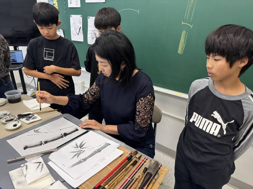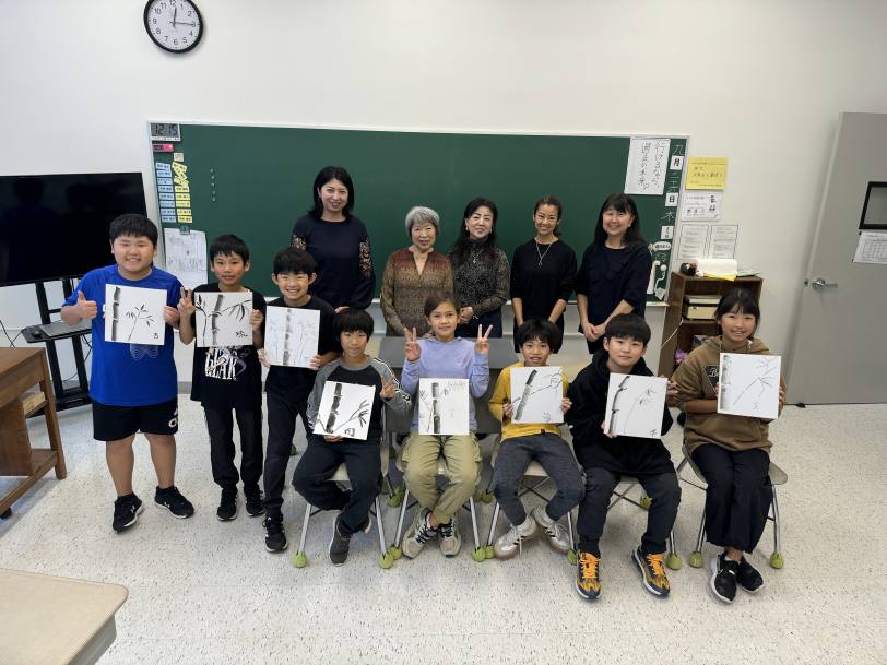 田中丸先生、そして長年に渡りこの活動をコーディネートしてこられた上住様をはじめとする5名の墨絵教室の皆様には大変お世話になり、アメリカにいながら、伝統芸術に触れることができた児童にとってはかけがえのない体験となりました。