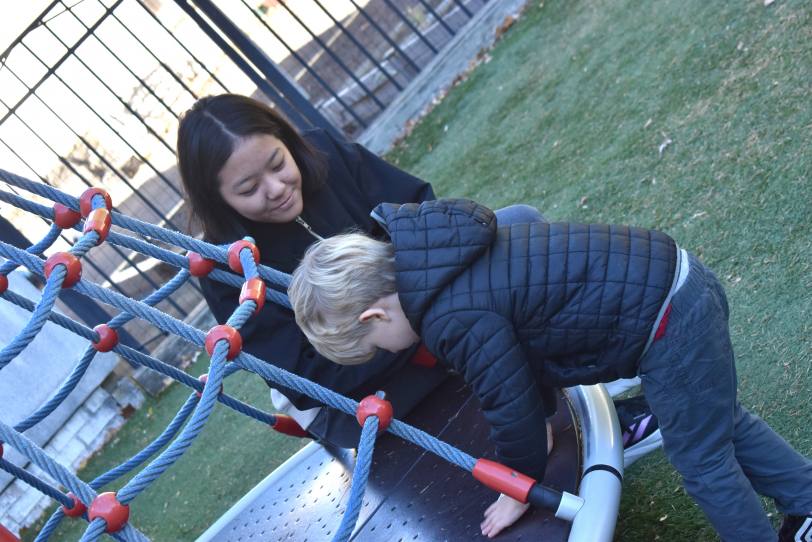 11月13日(水)に9年生が家庭科移動教室で学校の隣にあるChildren‘s Day School を訪れました。保育実習として、4歳児の子供たちと、安全に楽しく過ごすにはどうすればよいかを考え、自分たちが考えた遊びを通し、心身の発達について学びました。