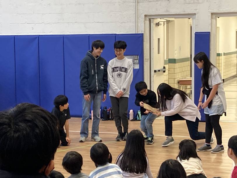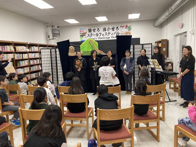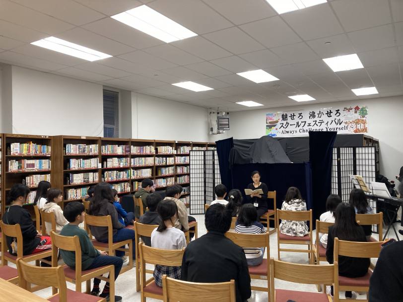 11月19日(火)に、ニューヨーク児童文化の会の皆様をお招きし、初等部を対象に「お話会」を開催しました。低学年、中学年、高学年と3部に分かれ、それぞれの学年に合った内容のお話を、素話、絵話、朗読、人形劇という形態で行っていただきました。子供たちは、お話しを聞きながら笑ったり、驚いたりとすっかりお話の世界に引き込まれ、あっという間に時間が過ぎていったようです。「お話がすごく上手だった」「とても楽しかった」という感想がたくさん聞かれました。