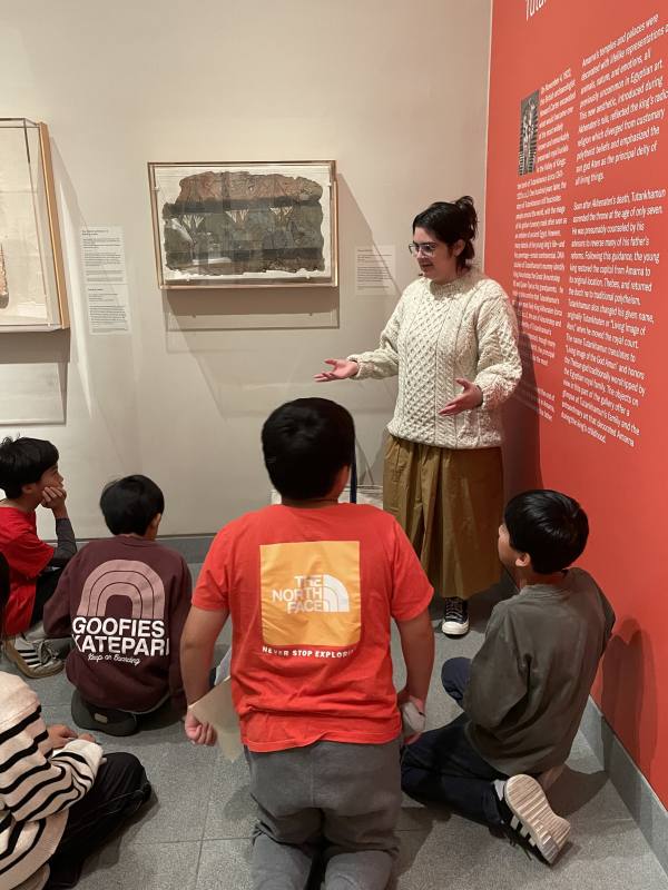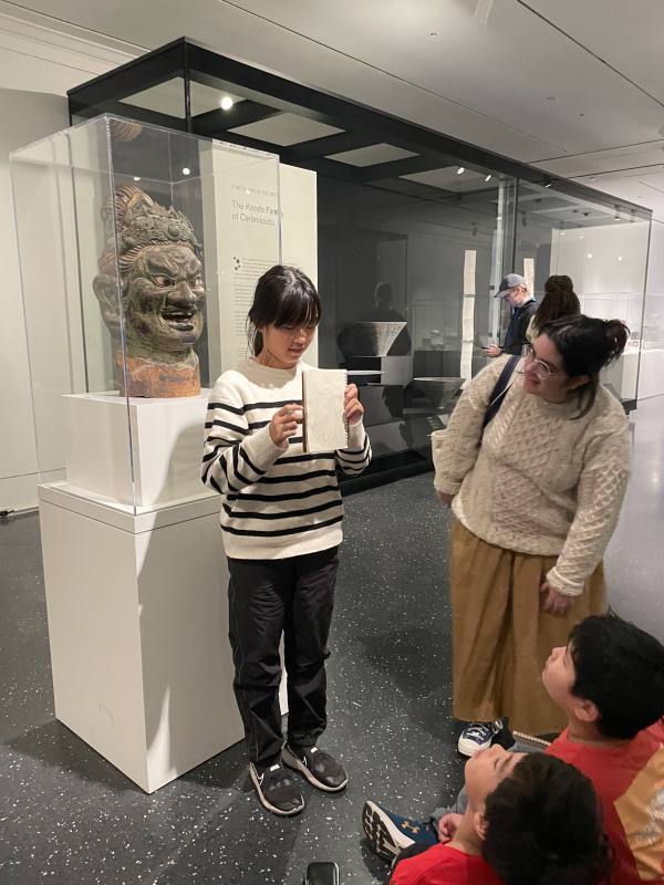 11月20日(水)に、5年生がArt科移動教室でBrooklyn Museumを訪れました。学芸員の方から展示されている仏像、現代アート、エジプトの絵の3点について説明があり、仏像のところでは展示されている頭部を見て、仏像の頭部から下の部分はどんな姿勢だったかを想像してスケッチしました。その後一人一人が、自分が書いたものをみんなの前で説明し、互いの想像力を共有しました。またライザ・ルーのビーズの作品を鑑賞し、その精巧さに驚きの声を上げていました。