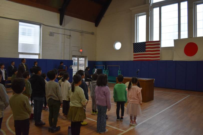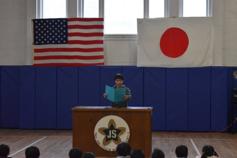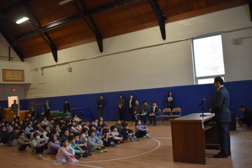 まず岡田校長先生は,グリニッチポイントでの初日の出の様子を伝えた後,今年も健やかで元気に自分の目標に向けて頑張っていこうと述べました。次に,「3学期は1年間のまとめの学期」との話があり,「自分は何ができるようになったか,どんな経験をしたか等の振り返りをしっかり行い,3学期も仲間と協力して楽しい学校づくりをしていきましょう」と伝えました。