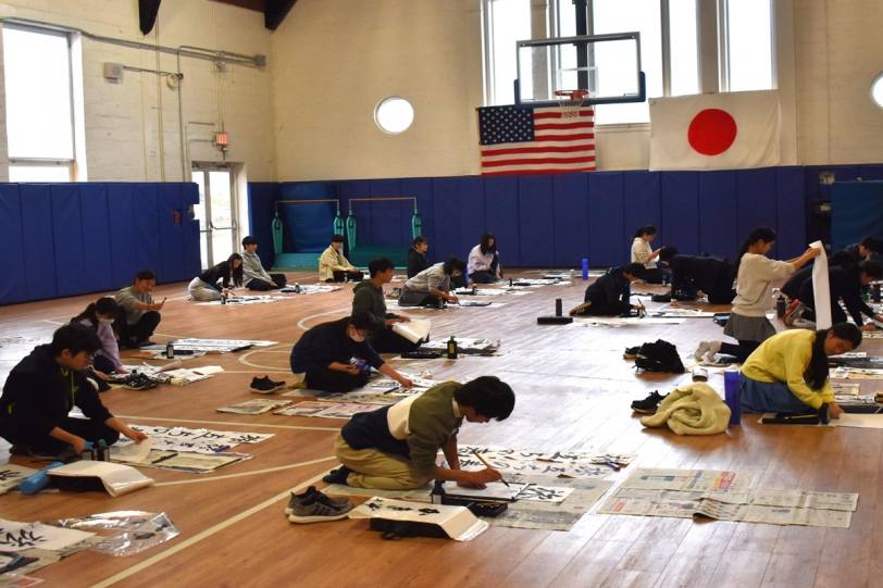 1・2年生は教室で硬筆を、初等部3年から6年生は楷書、中等部7年から9年は行書の毛筆の作品づくりを体育館で行いました。どの学年も、静寂な空気の中、一画一画丁寧に書こうと集中する姿が見られ、真剣に作品作りに取り組む姿が、大変印象的でありました。
