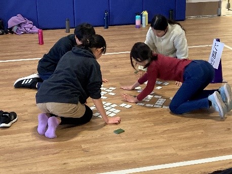 1月7日(火)に、体育館で6年生から9年生までが、百人人一首大会が一人一人のレベルに分かれ行われました。 体育館に響く読み手の声を聞き、「はい」という声で札を取り合う様子は緊張感にあふれていました。読み上げられたと同時に札を取る子供も大勢いて、これまでの練習の成果を発揮していました。