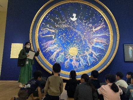 「The Hours」についての説明を受け、作品の背景などを詳細に鑑賞しました。作品から受ける印象を発表したり、作者が表現しようとしているものが何かの説明を受けたりし、より深い理解をすることができたようです。また、館内に展示している作品をスケッチして作品を味わっていました。