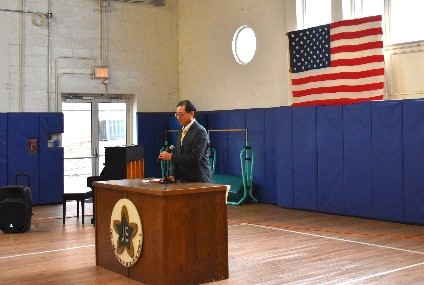 1月2日(木)に、3学期始業式が体育館で行われました。新年を迎えて一人一人が緊張感をもって始業式に参加しました。まず、校長から「新たな新年の目標に向かって、毎日少しずつ努力を重ねていきましょう」と全校の子供たちに向けて話しました。初等部代表として5年生から「一つのことに集中すること」を大切にしたいとして、学習面では理解するまで取り組むこと、物事は最後までやり遂げることなどを目標にしたいと述べました。中等部代表として8年生から受験に向けて学習面を計画的に進めること、学校を支える学年として自分の考えを発信して委員会など積極的に挑戦していきたいと抱負が述べられました。
