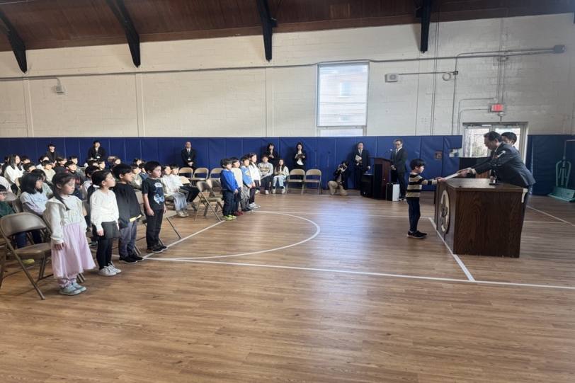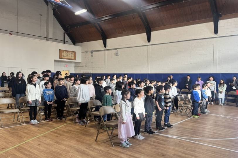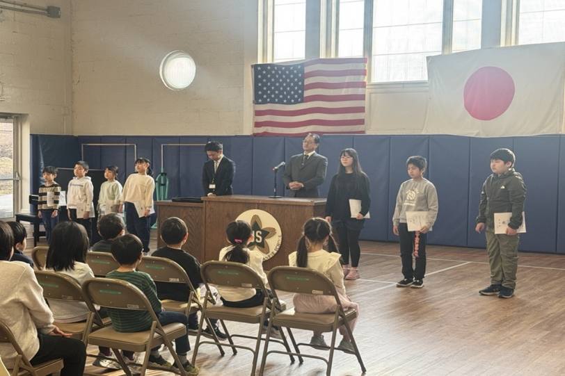 その後、代表児童生徒による発表が行われました。初等部の3年生の代表児童からは、1年間でできるようになった三つのことを述べ、春休みには自分の課題を見付け、4年生では新たな目標を設定し学び続けたいという決意を発表しました。中等部の代表生徒は、中等部へ進学して身に付けたことについての振り返りました。初等部とは違う学習方法、タイムマネジメントを自分で行うこと、先輩や友達と仲を深めたことなど1年間を振り返り、来年度もこの気持ちを大切にしたいと発表しました。二人の素晴らしい発表で会場は大きな拍手に包まれていました。