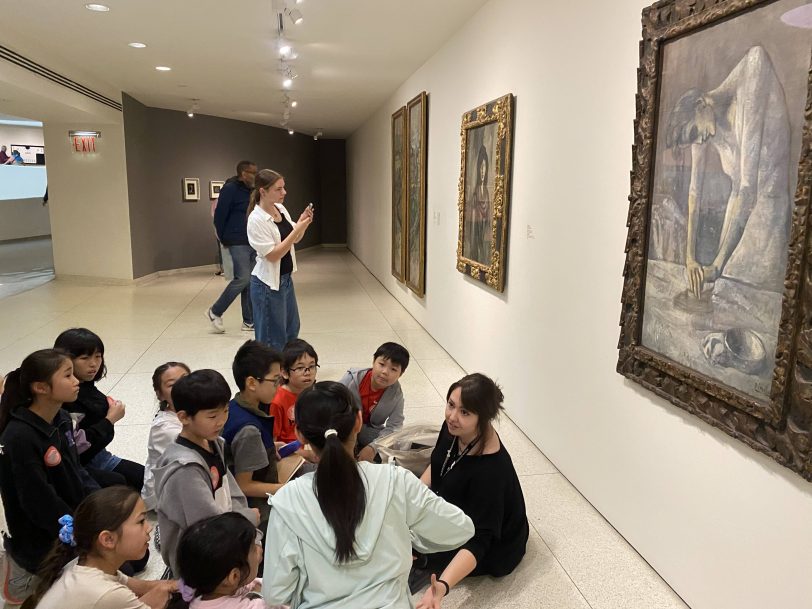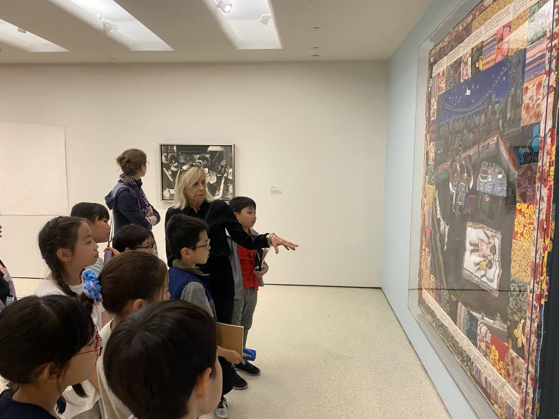 6月9日(月)、5年生がART科の移動教室として、グッゲンハイム美術館を訪れました。建物自体が自然との調和を意識して設計されており、子供たちはまずその独特な建築に目を奪われていました。館内では、絵画だけでなく、折り紙やキルトなど、さまざまな素材を用いた作品が展示されており、子どもたちは興味津々で作品を鑑賞していました。
