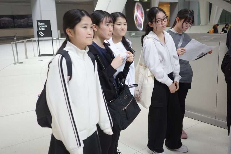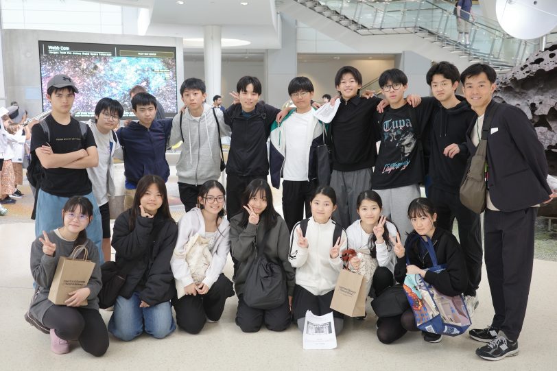 生徒たちは,理科の授業で事前学習を行い,知識を深めたうえで見学に臨みました。恐竜の巨大な骨格標本や最新の宇宙展示を前に,解説を読み込み,友達と発見を伝え合う姿が見られました。事前に学んだことと実際の展示を結び付けることで,科学の世界をより身近に感じている様子でした。