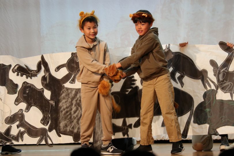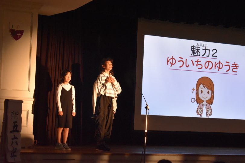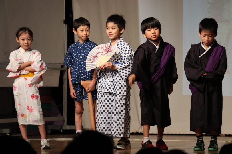 1・2年生は落語「寿限無~なまえにこめたおもい~」を題材に、名前に込められた思いや願いを明るくユーモラスに表現しました。観客も一緒に声を出す場面があり、笑いに包まれた発表となりました。3・4年生はミュージカル劇「The GJS Lion King~正義と勇気の物語~」を上演し「ハクナ・マタタ(なんとかなるさ)」の言葉を合言葉に、勇気と正義の大切さを伝えました。5・6年生は「繋げ!50周年の白熱ビブリオバトル!」として、おすすめの本を紹介し合い、観客の投票でチャンプ本を決定しました。読書への思いと表現力が光る発表でした。