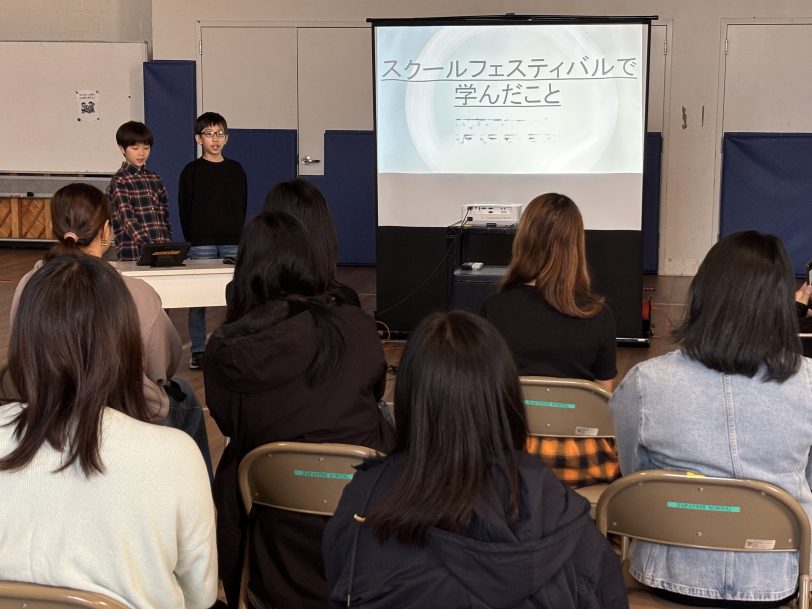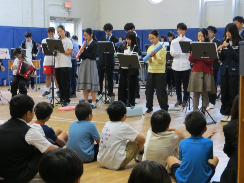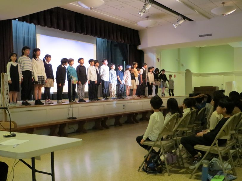 初等部,中等部はそれぞれ合唱・合奏を聴かせてくれました。心を込めて歌うハーモニーが会場に響き渡り,ニューヨーク日本人学校スクールフェスティバルのフィナーレを迎えました。一人一人が自分の役割にしっかりと向き合いながら,緊張やどきどきする気持ちをはねのけながら「舞台の上で堂々と」発表することができました。子供たちは発表に向けて日々練習を重ねる中で,自らのできることを増やしたり,技能を伸ばしたりして確実な成長を見せてくれたと感じます。