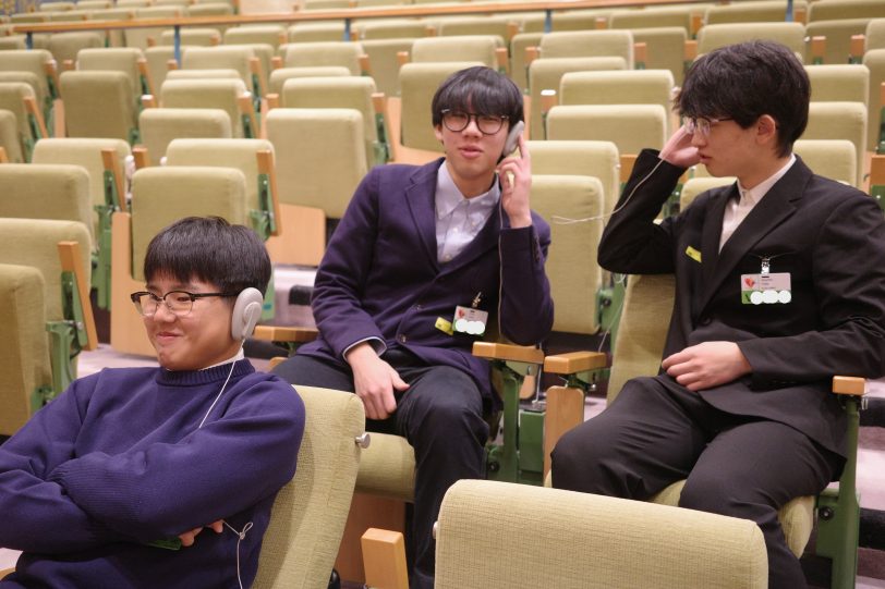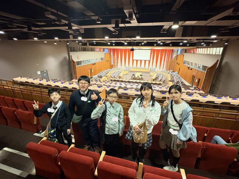 その後,児童生徒たちは国際連合本部ツアーに参加し,日本から寄贈された『平和の鐘』,国連総会議場,そして戦争や核兵器に関する展示などを見学しました。展示を通して,歴史や公民の学習で扱ってきた出来事が現在の国際問題とどのようにつながっているのか,平和を維持するために国連がどのような役割を果たしているのかを実際に感じ取ることができました。