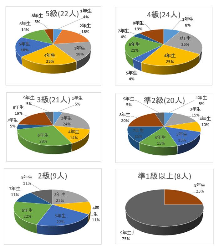 「2級と準2級」,「準2級と3級」,「3級と4級」,「4級と5級」の複数級の受験も可能です。